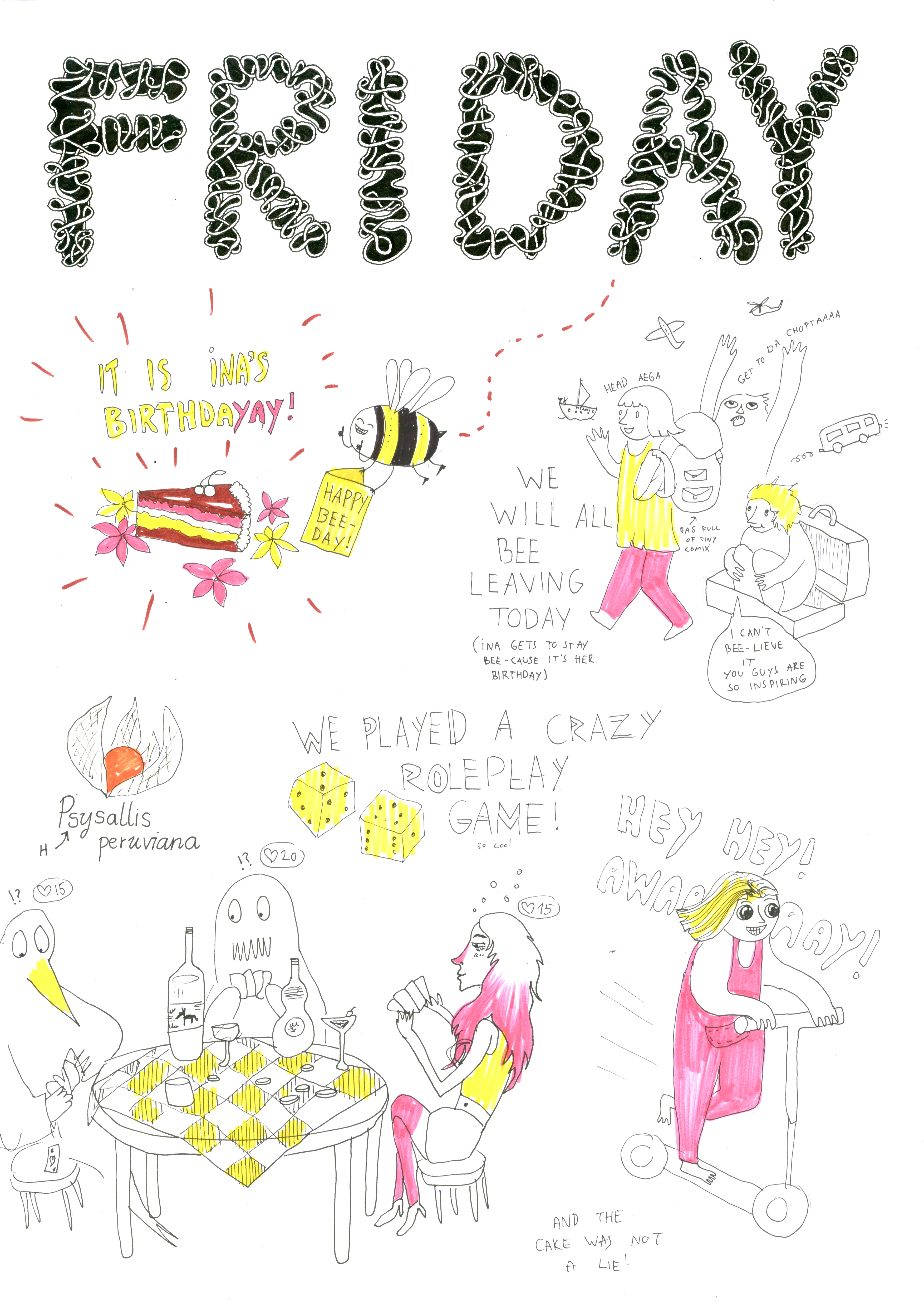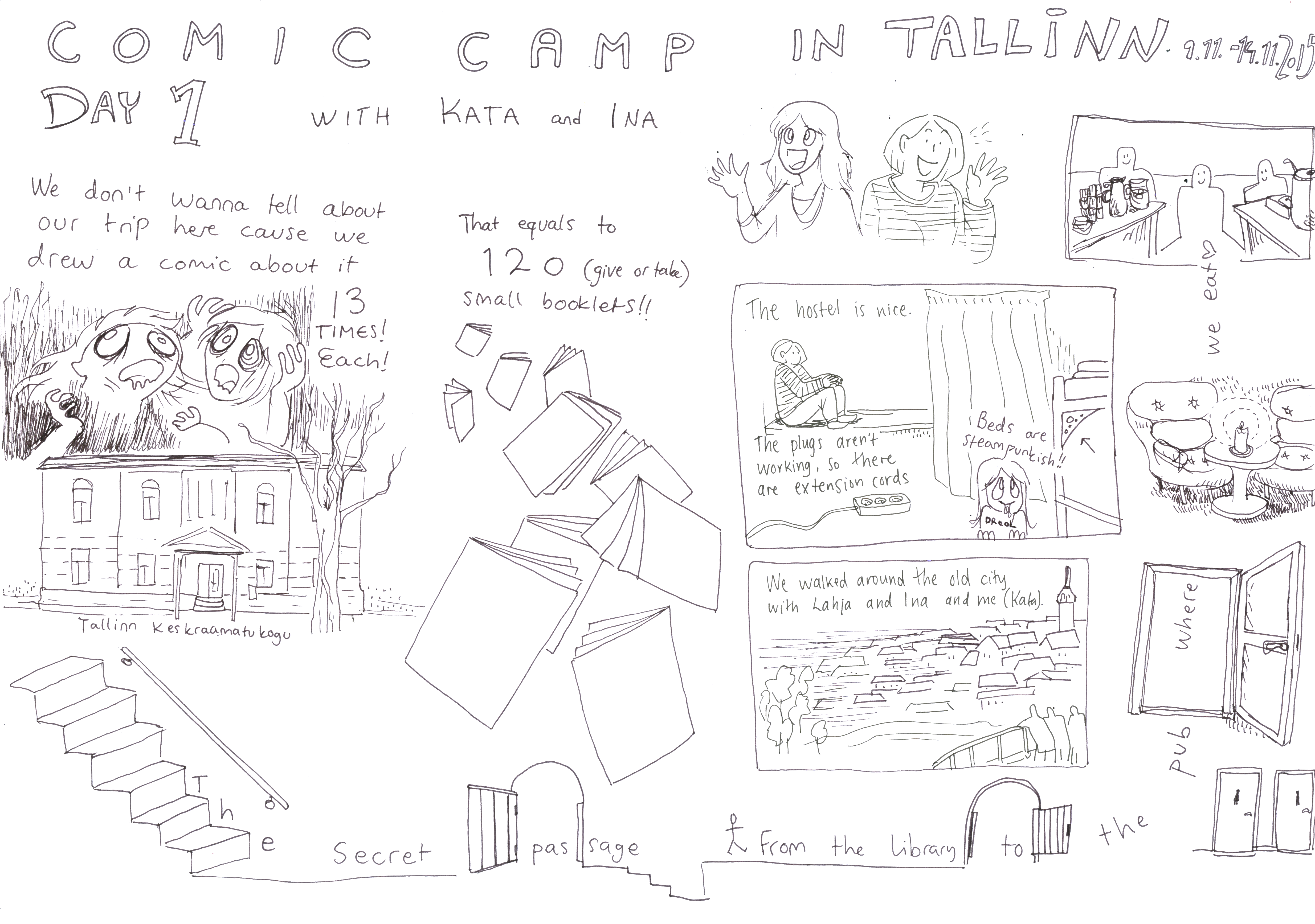 The workshops in Helsinki & Tallinn supported each other by offering different content. The comics camp in Tallinn focused more on exercises and making a lot of content in short amount of time eg. short one page comics, technique experiments and small zines.